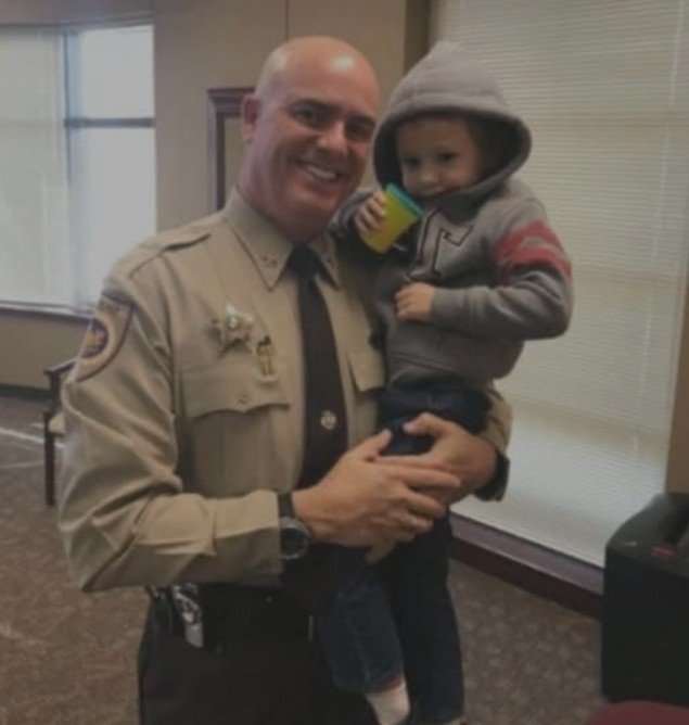 The officer felt a slight tug on his clothing after completing a normal patrol. A young youngster in a bright red Spider-Man shirt, barefoot, was smiling up at
