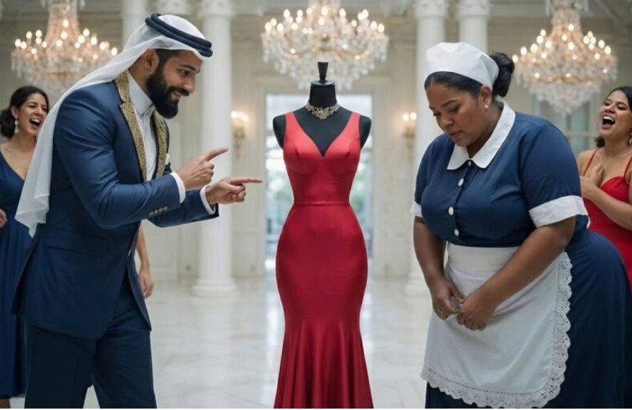 That evening, the grand hall filled with guests. The sheikh stood in the center, certain he was about to witness the funniest show of the night. He was already imagining Leila, panting and ridiculous, trying to squeeze into the dress while everyone laughed.