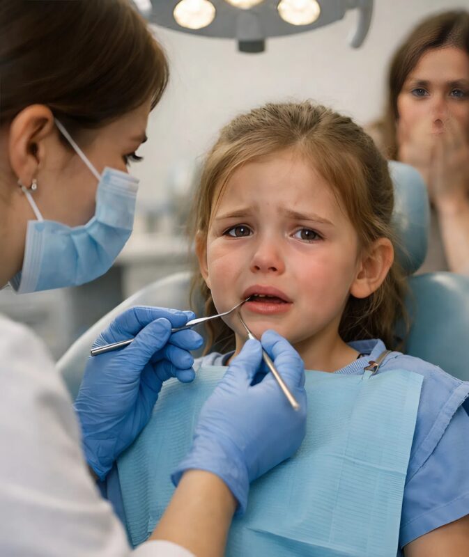 He carefully took an instrument and, with an almost imperceptible motion, removed something dark from the gum. Then the doctor straightened up, looked at me, and said quietly but very clearly, “Stay calm. I am calling the police immediately.” 😨😱 When I learned what was really happening to my child, I was horrified. Continuation in the first comment 👇👇
